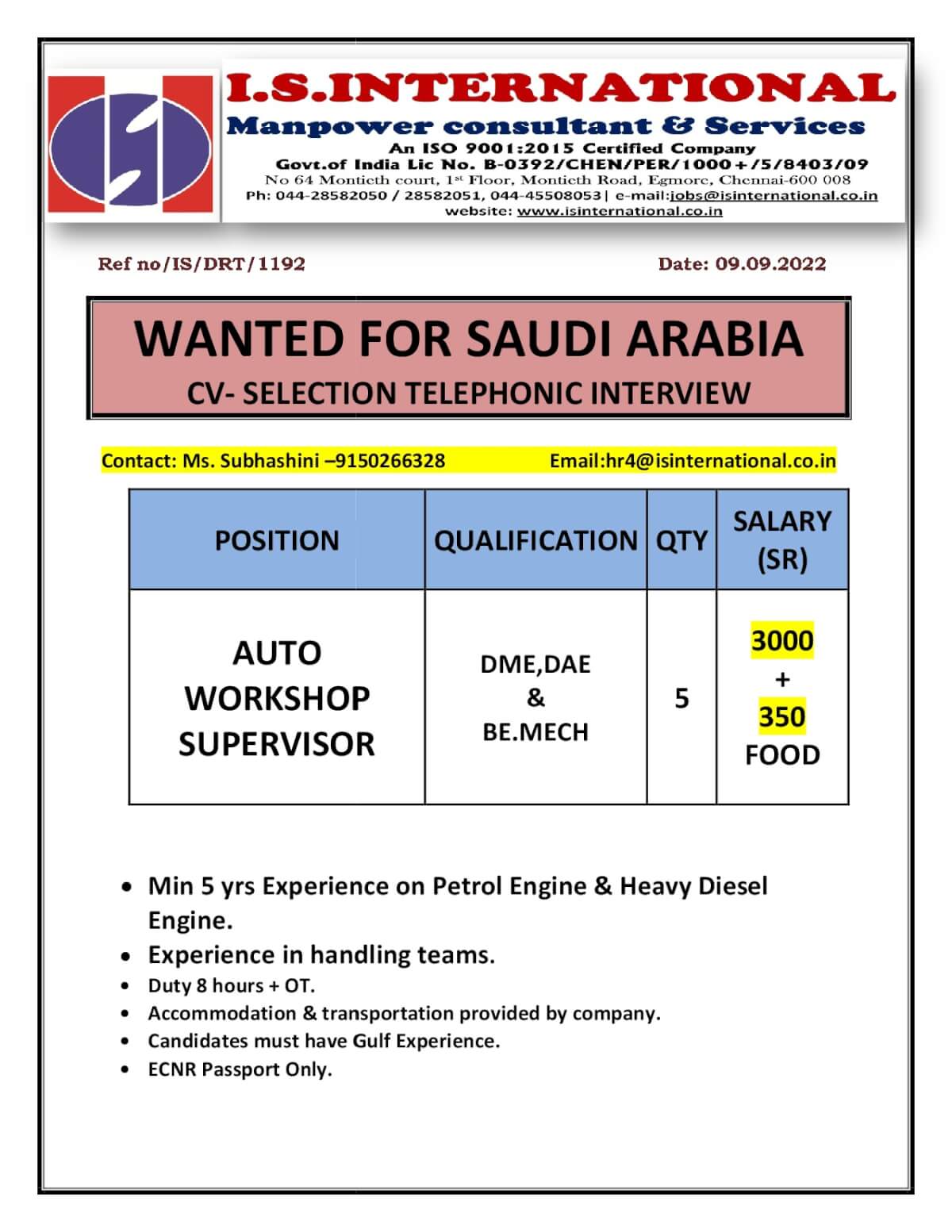 Minimum 5 years experience on petrol engine & heavy diesel engine