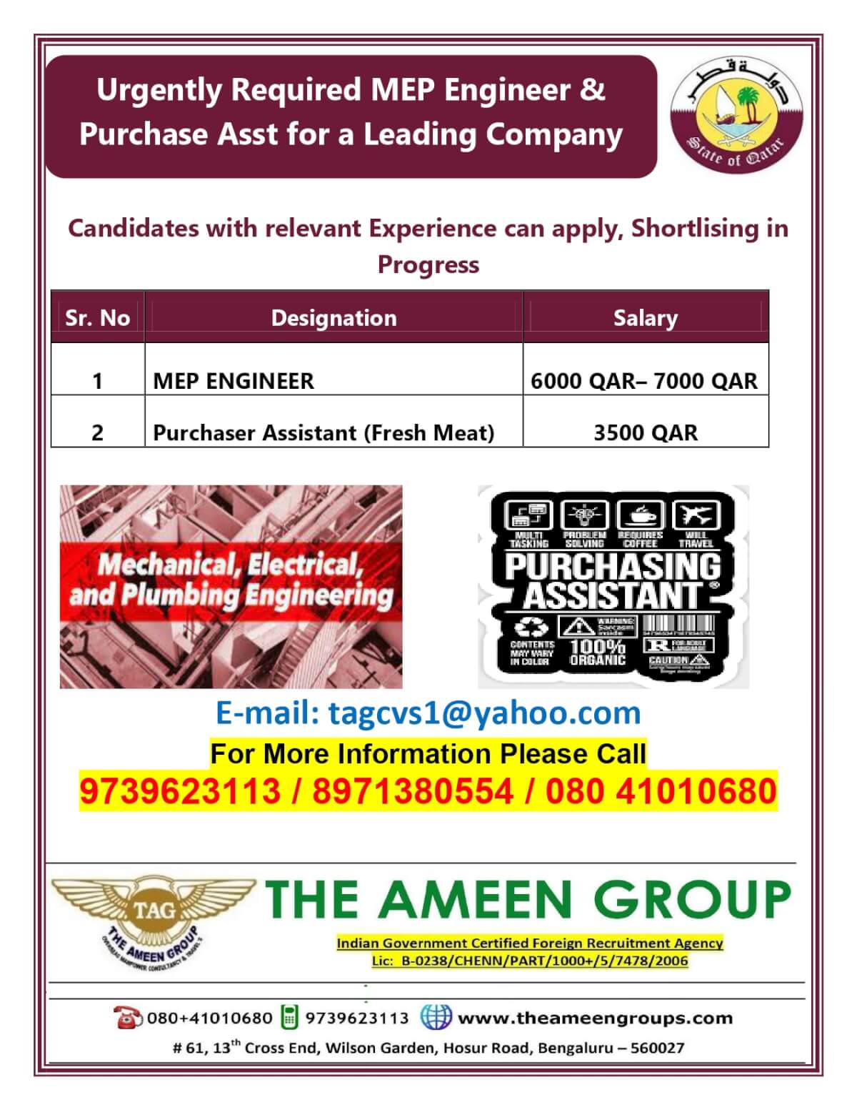 | MEP engineer | 7000 QAR | |