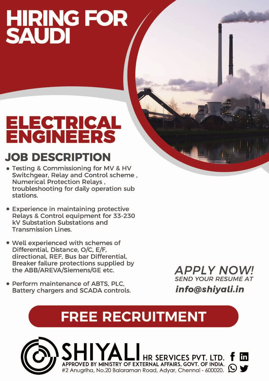 Electrical Engineer jobs in Saudi Arabia - Free recruitment