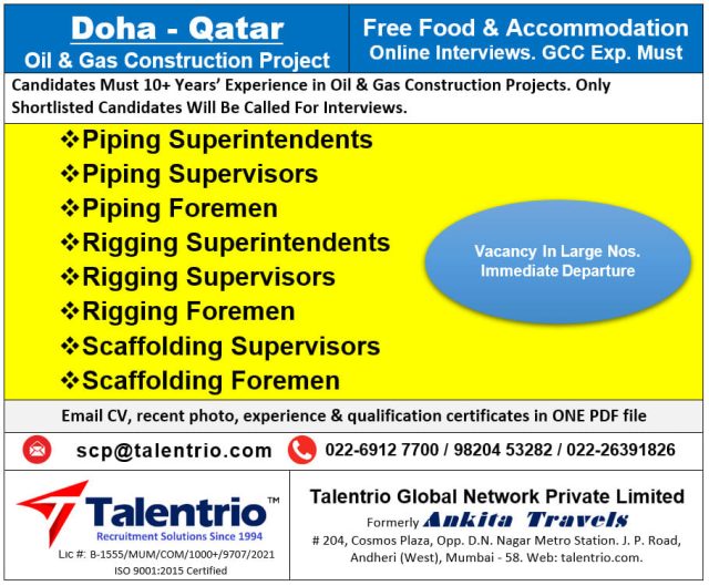 Wanted for Qatar - Oil & Gas Project