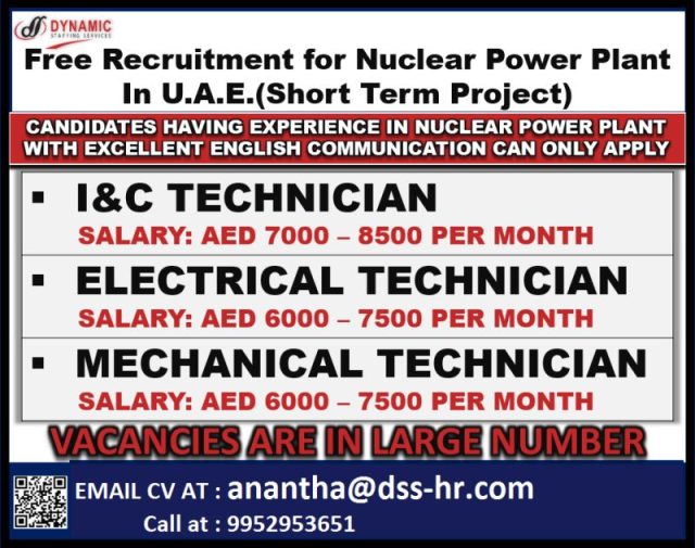 Free recruitment to UAE - Nuclear Power Plant