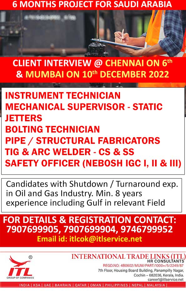 Candidates with shutdown/turnaround exp.in oil & gas industry can apply