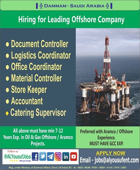 Candidated must have minimum 7 - 12 years experience in oil & gas offshore/Aramco projects
