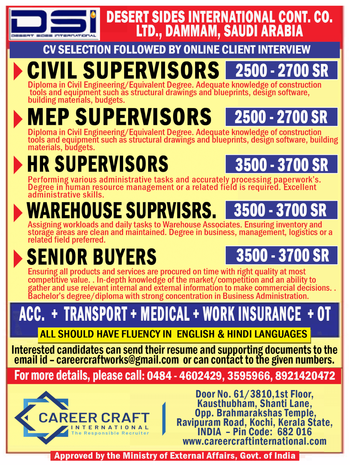 Desert Sides International Cont. Co. Ltd - Urgent hiring