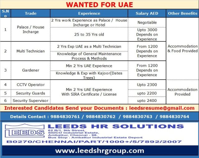 Email: leedsresume@gmail.com / Contact : 9884830761/9884830762/988430763/9884830764