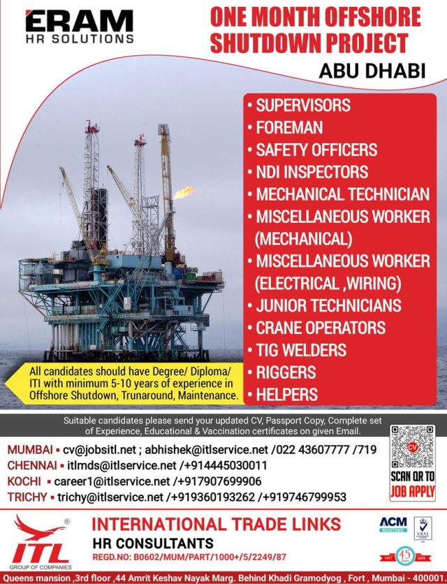 Candidates must have minimum 5 - 10 years experience in offshore shutdown, turnaround, maintenance
