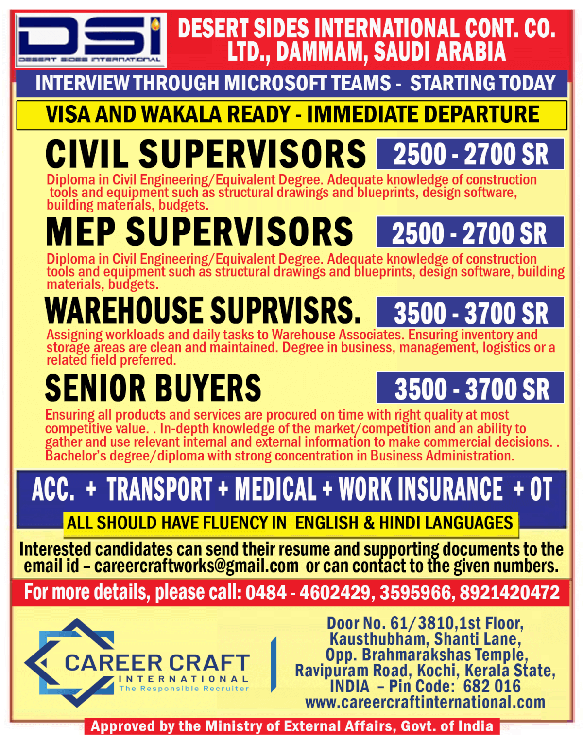 Disclaimer:- GCCWALKINS have no involvement in any recruitment process, This website just sharing job vacancies & interviews from various sources. Applicants are advised to research the bonafides of the prospective employer independently. We do NOT endorse any requests for money payments and strictly advice against sharing personal or bank related information. If you suspect any fraud or malpractice, email us at gccwalkins@gmail.com