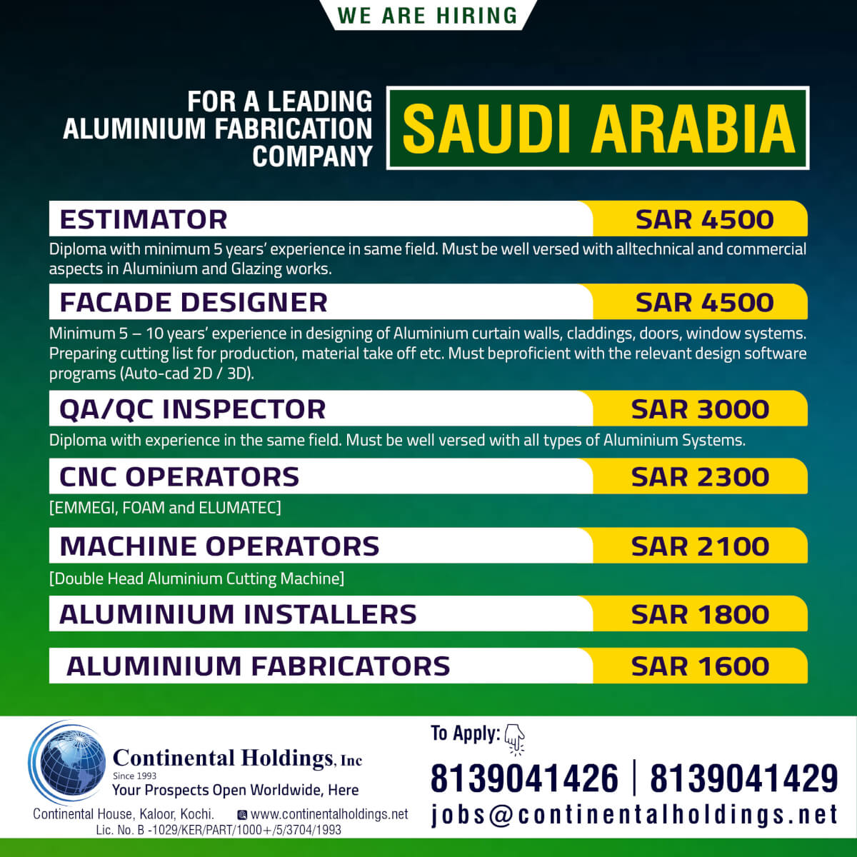 Wanted for Saudi arabia - Aluminium Fabrication Company