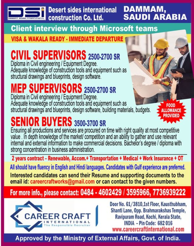 Disclaimer:- GCCWALKINS have no involvement in any recruitment process, This website just sharing job vacancies & interviews from various sources. Applicants are advised to research the bonafides of the prospective employer independently. We do NOT endorse any requests for money payments and strictly advice against sharing personal or bank related information. If you suspect any fraud or malpractice, email us at gccwalkins@gmail.com