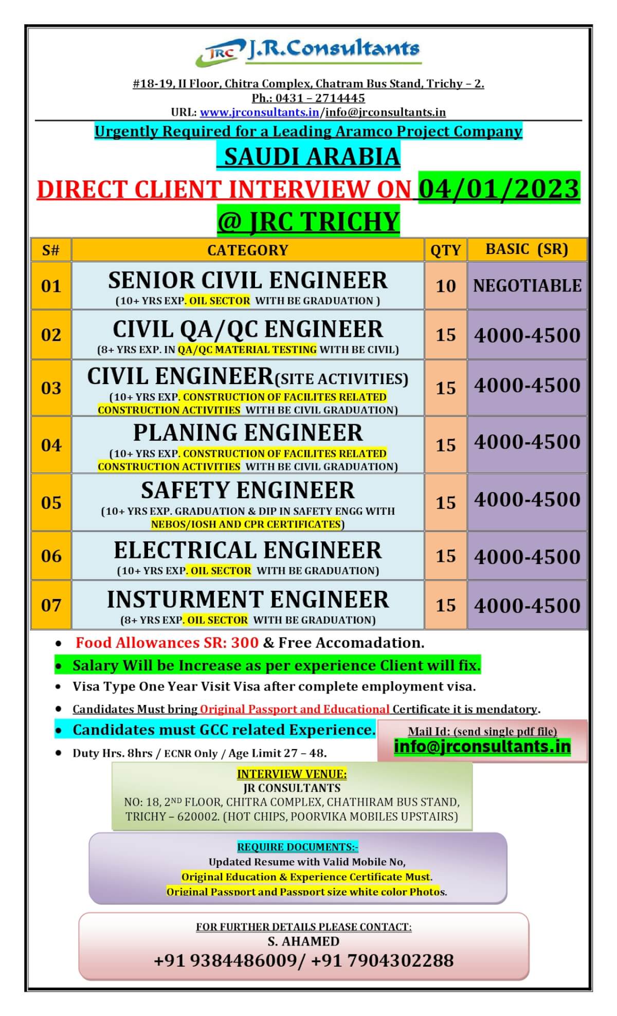| Civil QA/QC engineer | 15 | 4500 SAR |