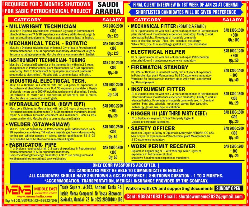 Mechanical fitter (rotatic & static) | 100 | 1800 SAR |