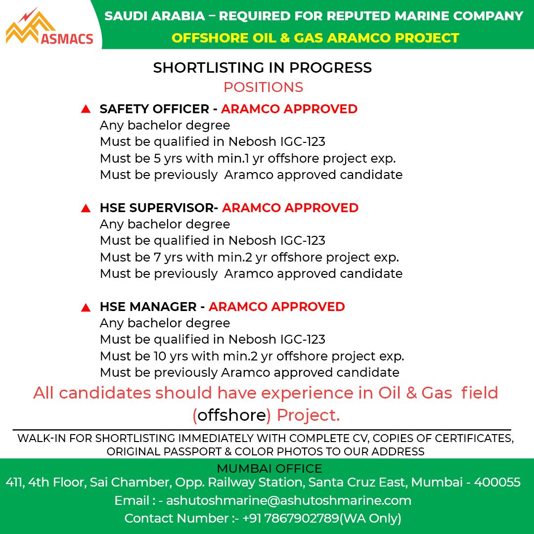 All Candidates should have experience in Oil & Gas field (Offshore) Project.