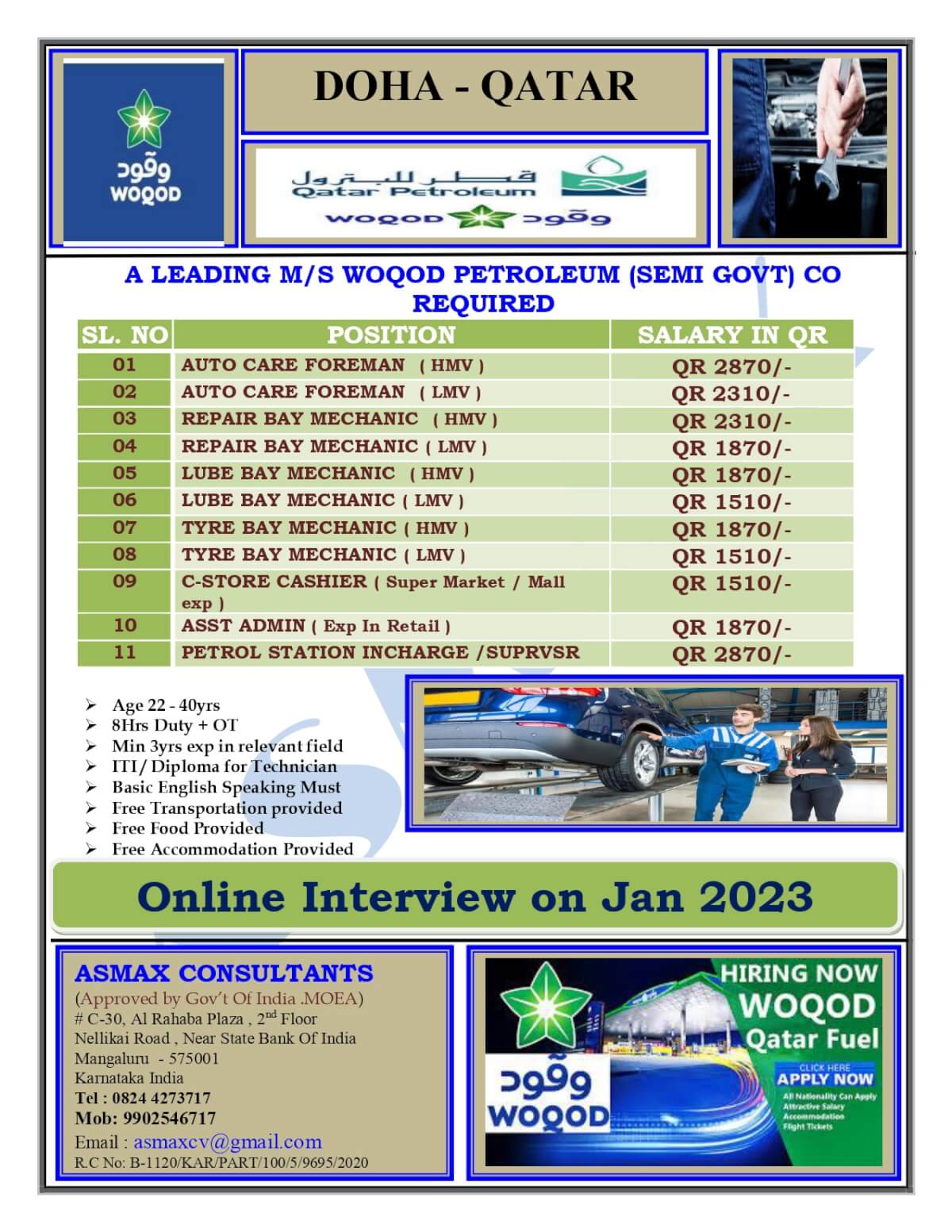 | Petrol Station In-Charge/Supervisor | 2870 QAR |
