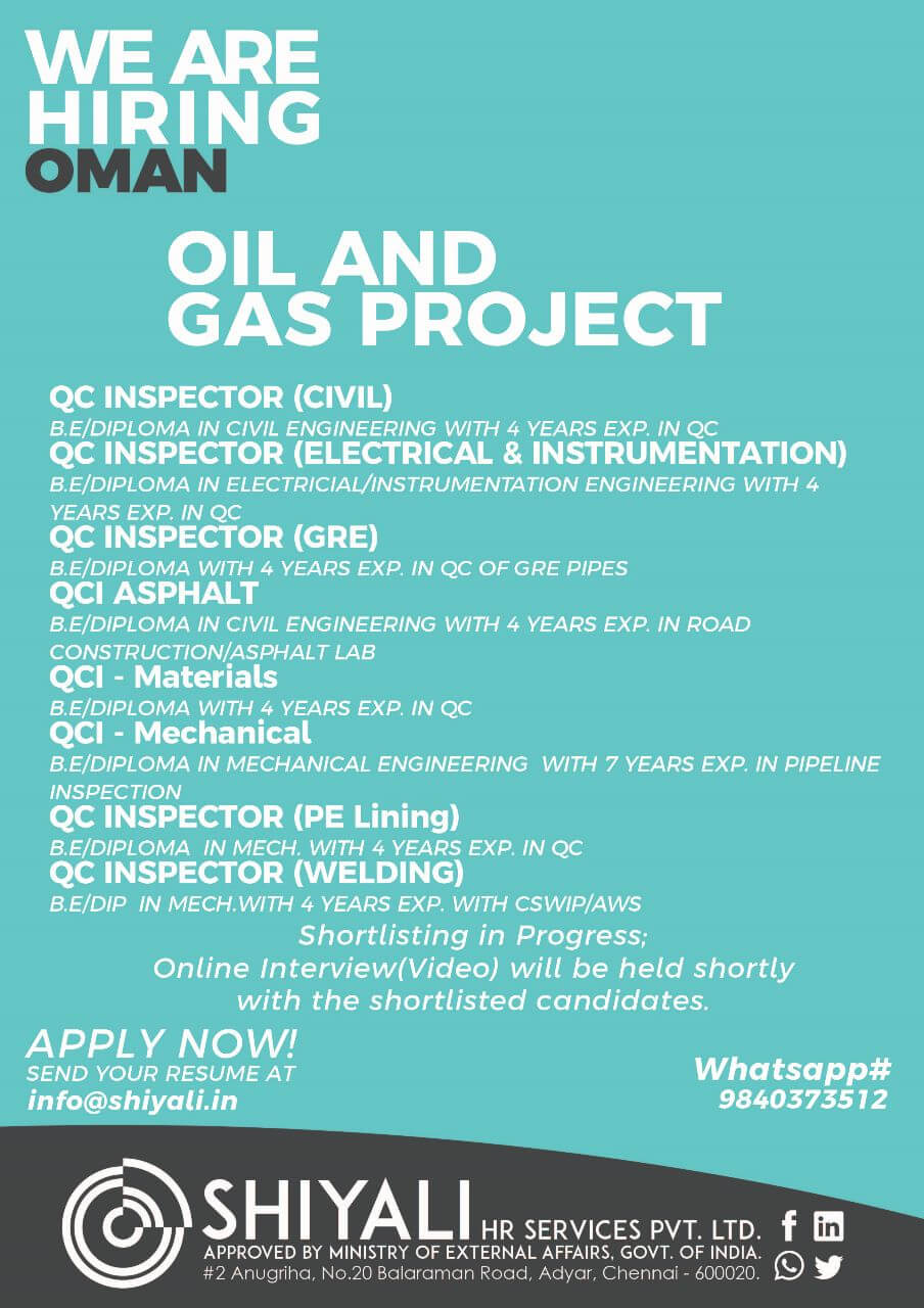 QC Inspector jobs in Oman - Oil & Gas Project