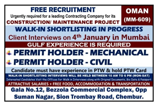 Disclaimer:- GCCWALKINS have no involvement in any recruitment process, This website just sharing job vacancies & interviews from various sources. Applicants are advised to research the bonafides of the prospective employer independently. We do NOT endorse any requests for money payments and strictly advice against sharing personal or bank related information. If you suspect any fraud or malpractice, email us at gccwalkins@gmail.com