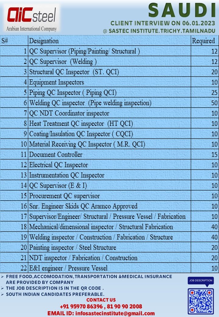 | Supervisor/engineer/strl/pressure vessel/fabrication | 10 | |