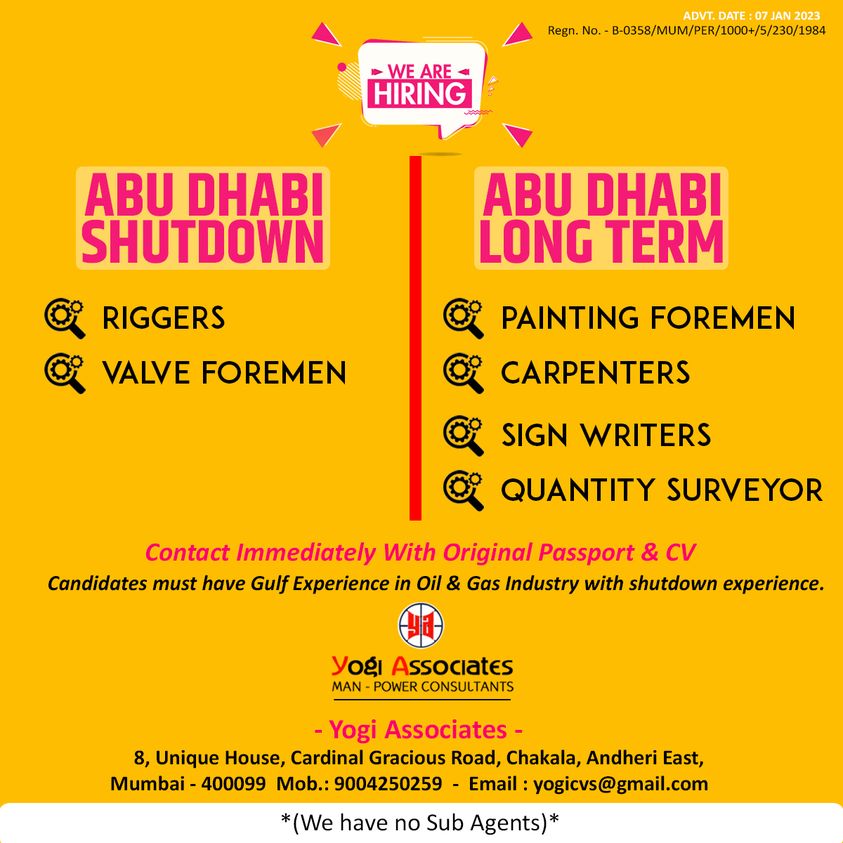 Disclaimer:- GCCWALKINS have no involvement in any recruitment process, This website just sharing job vacancies & interviews from various sources. Applicants are advised to research the bonafides of the prospective employer independently. We do NOT endorse any requests for money payments and strictly advice against sharing personal or bank related information. If you suspect any fraud or malpractice, email us at gccwalkins@gmail.com