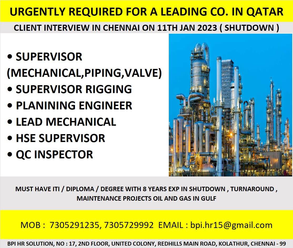 Candidates must have minimum 8 years experience in shutdown, turnaround & maintenance projects in oil & gas industry