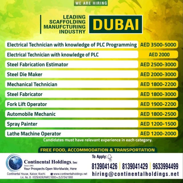 Wanted for Duabi - Scaffolding Manufacturing Industry