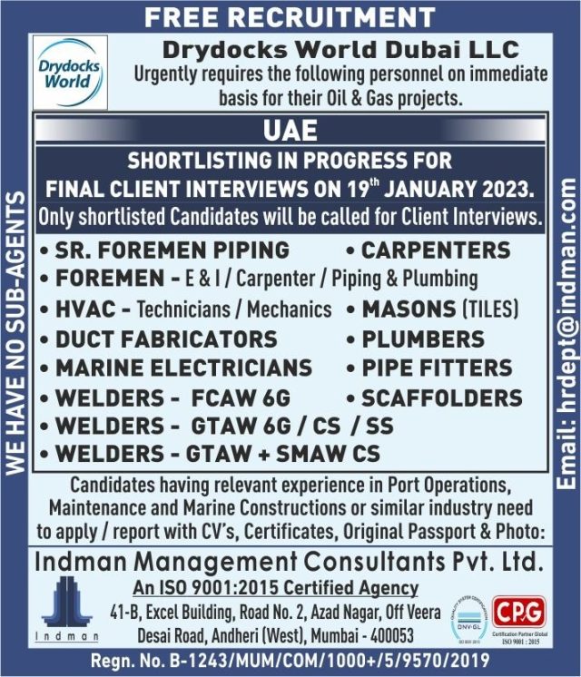 Dubai dry dock Job Vacancy 2023 - Free recruitment