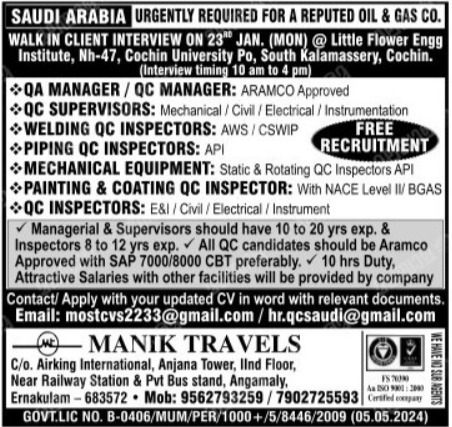 Email: mostcvs2233@gmail.com, hr.qcsaudi@gmail.com