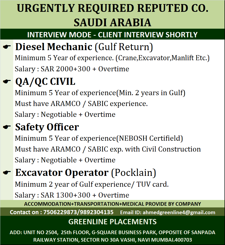 Disclaimer:- GCCWALKINS have no involvement in any recruitment process, This website just sharing job vacancies & interviews from various sources. Applicants are advised to research the bonafides of the prospective employer independently. We do NOT endorse any requests for money payments and strictly advice against sharing personal or bank related information. If you suspect any fraud or malpractice, email us at gccwalkins@gmail.com
