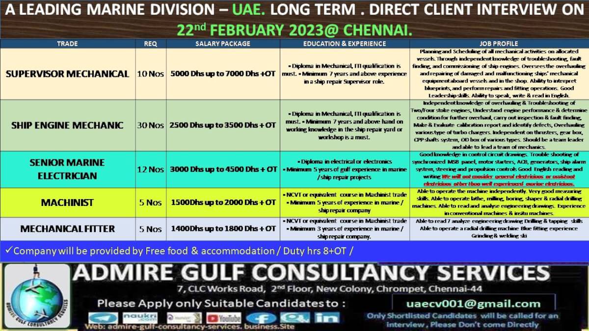 Marine Job vacancy in UAE - Long Term