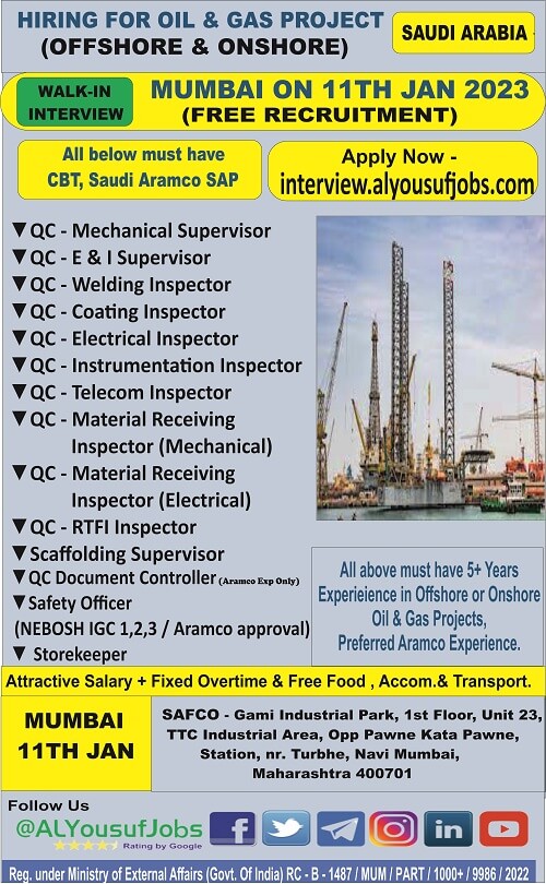 Offshore & Onshore Oil & Gas Project - Free recruitment to Saudi arabia
