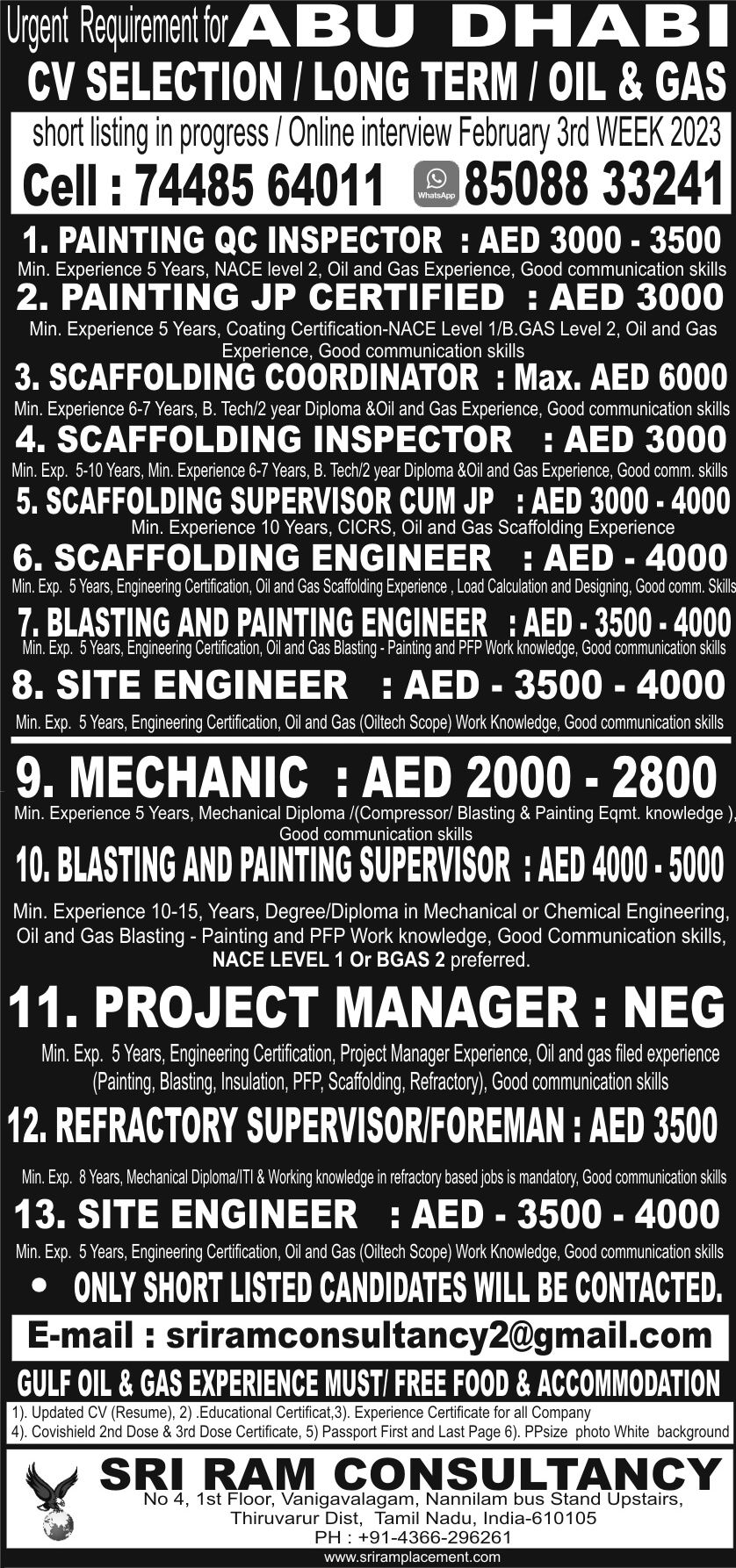| Scaffolding supervisor cum JP | 4000 AED | |