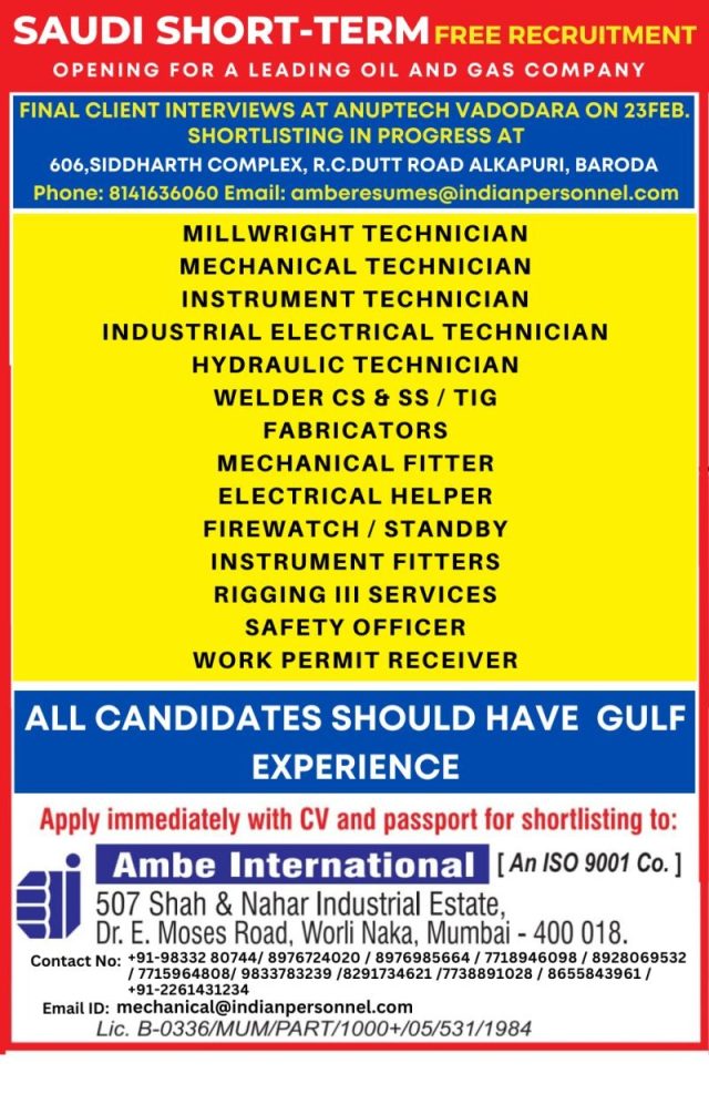 Disclaimer:- GCCWALKINS have no involvement in any recruitment process, This website just sharing job vacancies & interviews from various sources. Applicants are advised to research the bonafides of the prospective employer independently. We do NOT endorse any requests for money payments and strictly advice against sharing personal or bank related information. If you suspect any fraud or malpractice, email us at gccwalkins@gmail.com