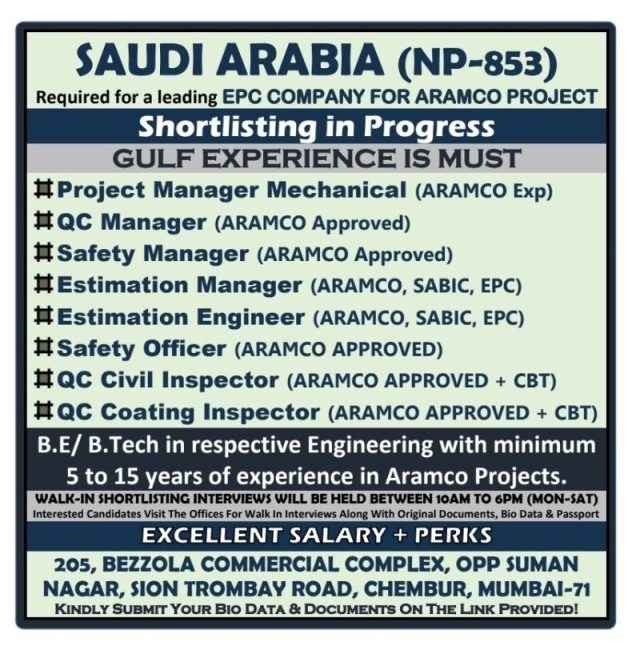 Candidates must have minimum 5 - 15 years experience in Aramco projects