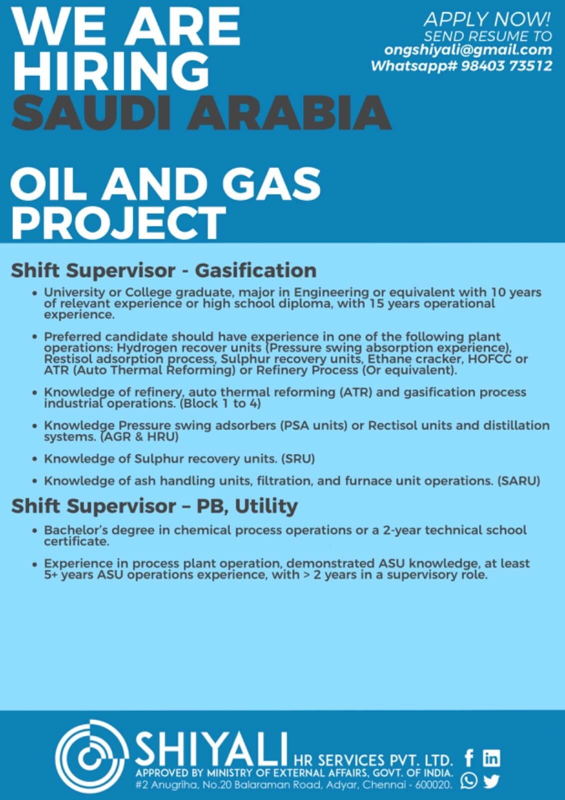 Shift Supervisor Jobs in Saudi Arabia - Oil & Gas Project