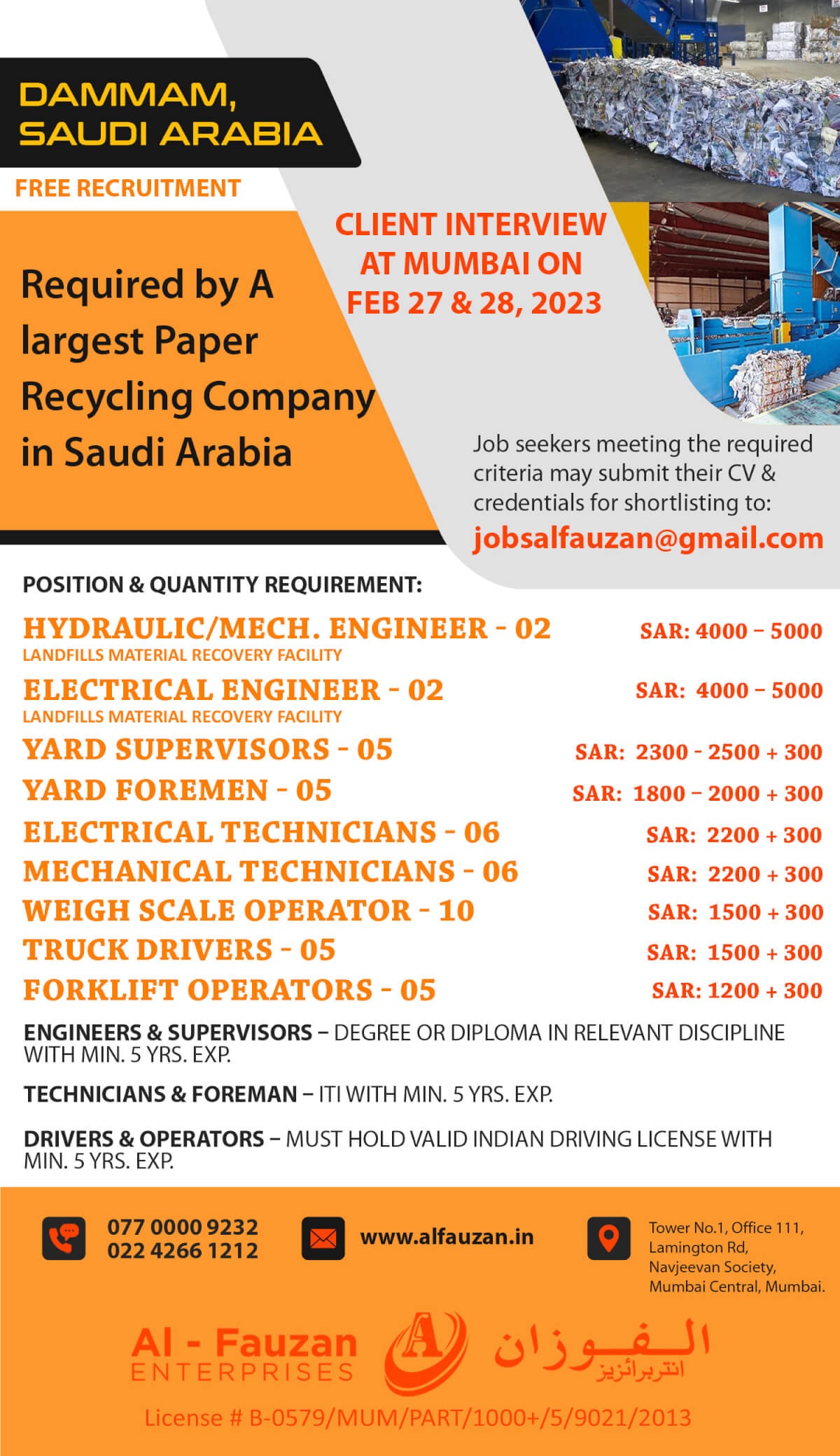 Free recruitment to Saudi arabia - Paper Recycling Company