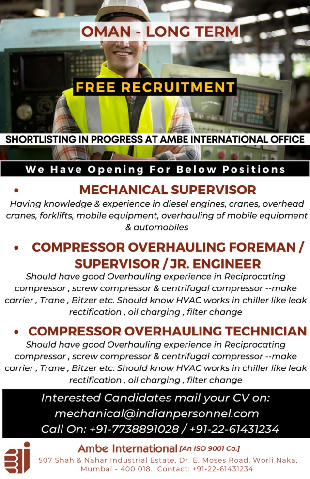 | Compressor overhauling foreman/supervisor/junior engineer | ||