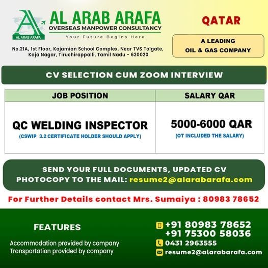 QC Welding Inspector job in Qatar - Oil & Gas Company