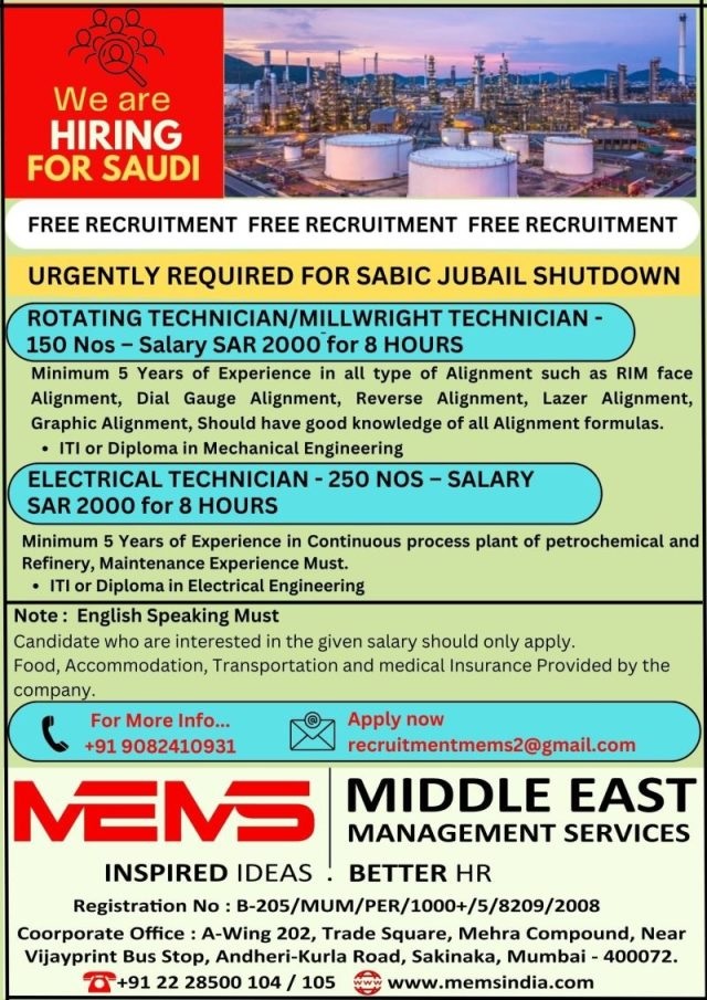 | Rotating technician/millwright technician | 150 | 2000 SAR |