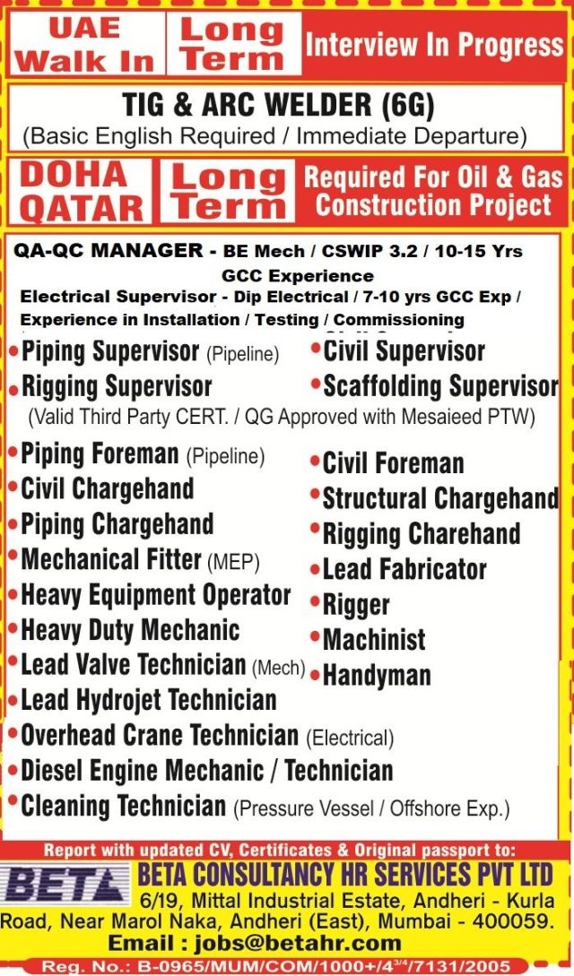 Disclaimer:- GCCWALKINS have no involvement in any recruitment process, This website just sharing job vacancies & interviews from various sources. Applicants are advised to research the bonafides of the prospective employer independently. We do NOT endorse any requests for money payments and strictly advice against sharing personal or bank related information. If you suspect any fraud or malpractice, email us at gccwalkins@gmail.com