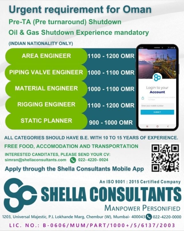 Oman shutdown jobs 2023 - Urgent requirement
