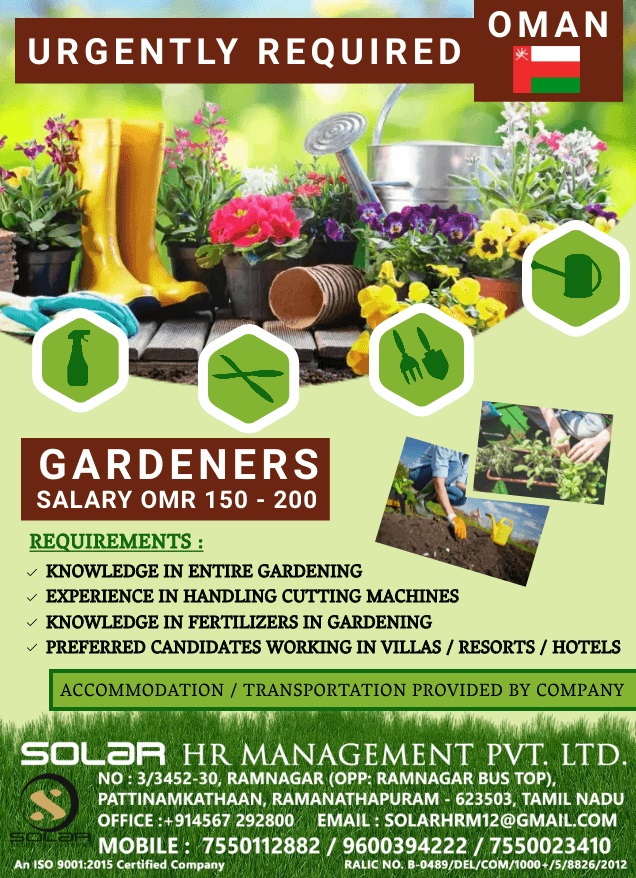 Gardener job in Oman - Urgently required