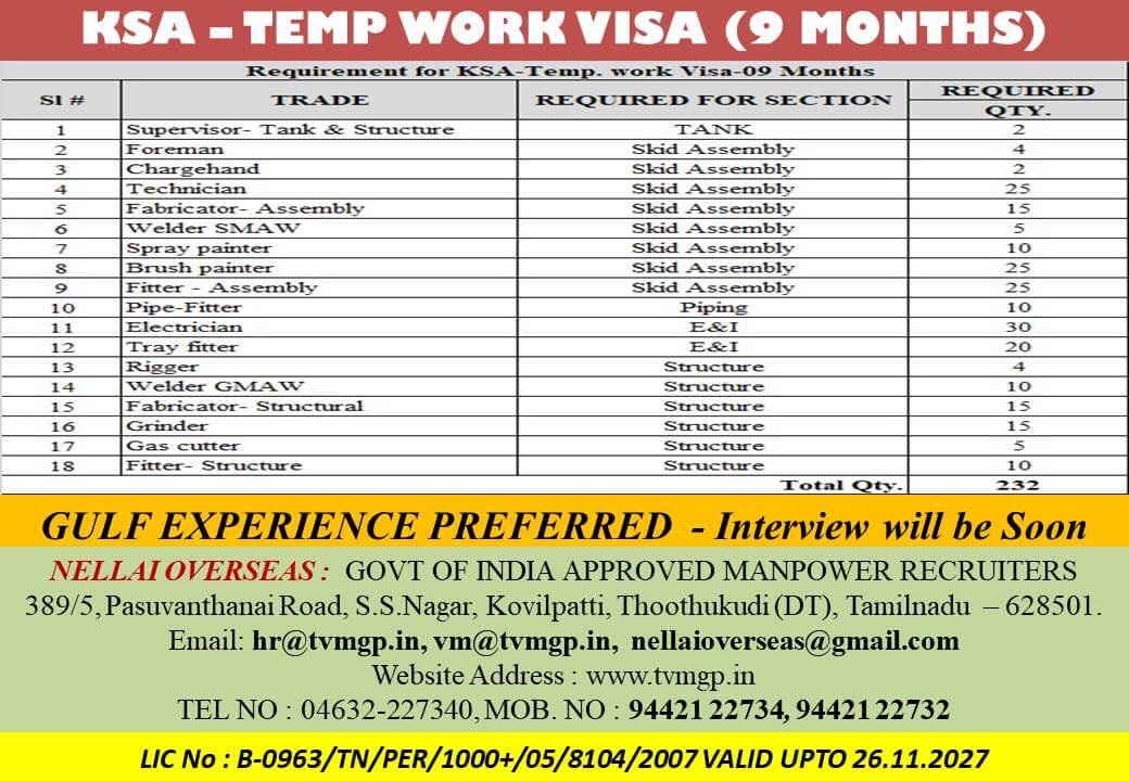 Email: hr@tvmgp.in / vm@tvmgp.in / nellaioverseas@gmail.com / 04632-227340, 7442122734, 9442122732