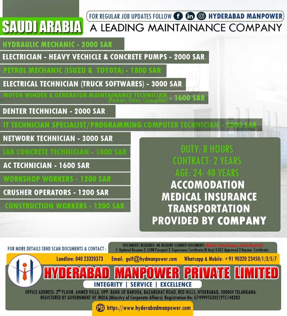 Electrician - heavy vehicle & concrete pumps | 2000 SAR | |