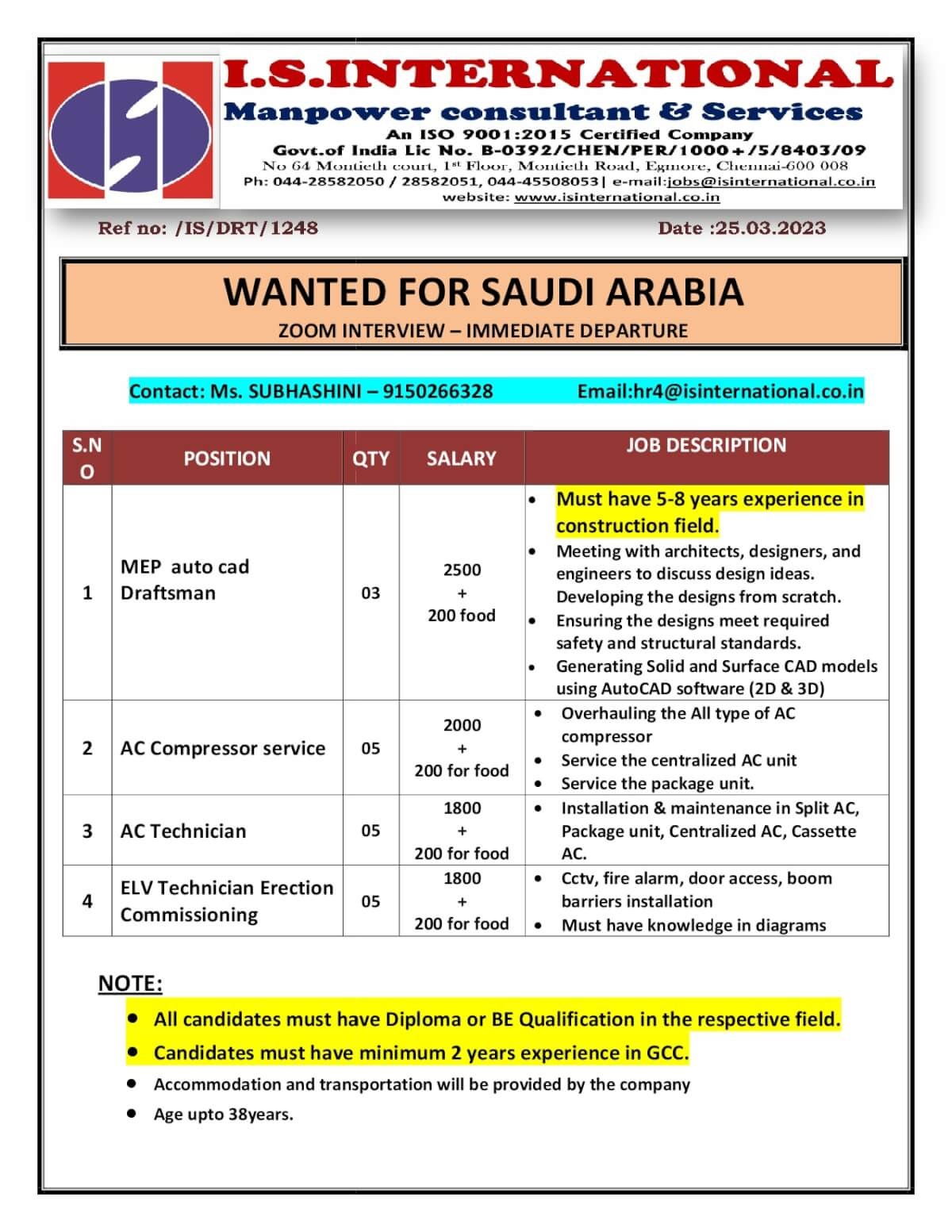 | ELV technician erection commissioning | 5 | 2000 SAR |