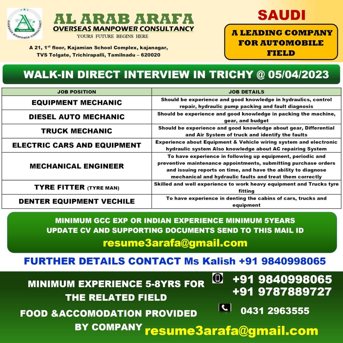 Automobile jobs in Saudi Arabia - Walk in Interview
