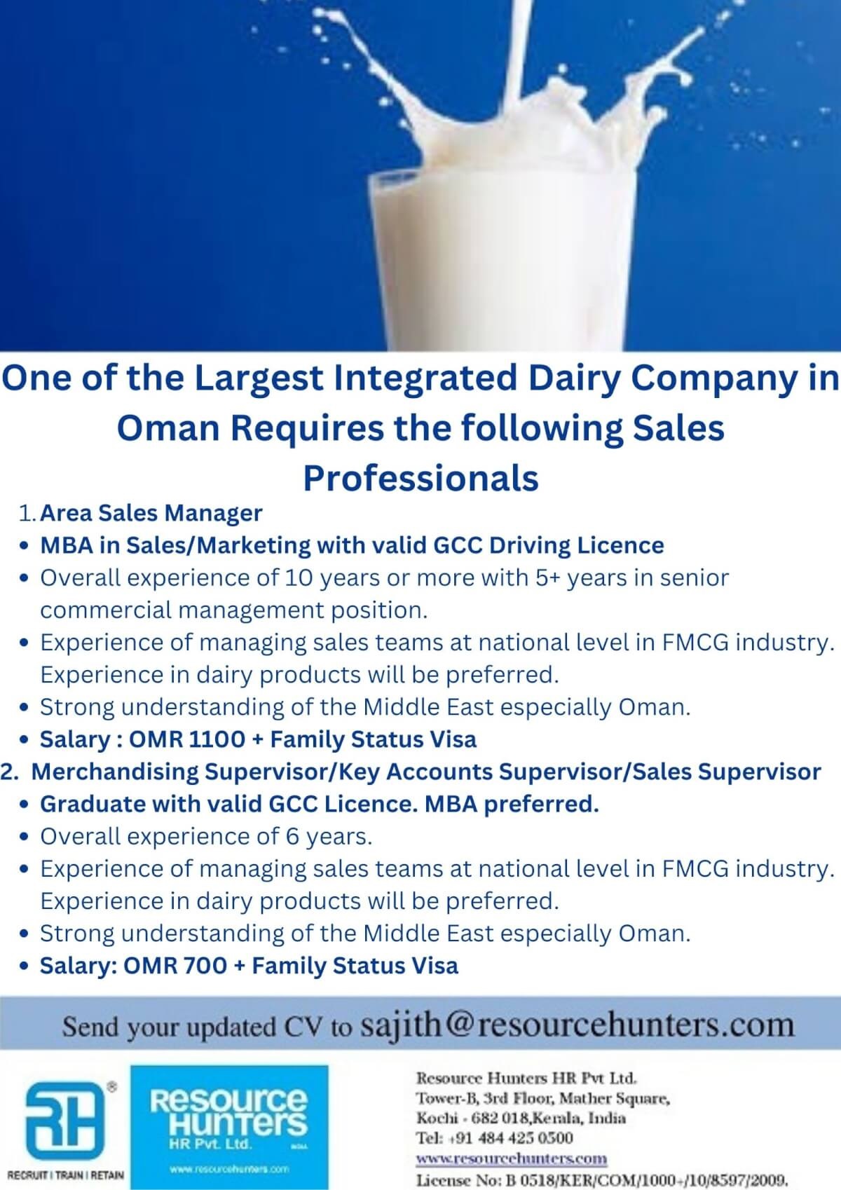 | Merchandising supervisor/key accounts supervisor/sales supervisor | 700 OMR |
