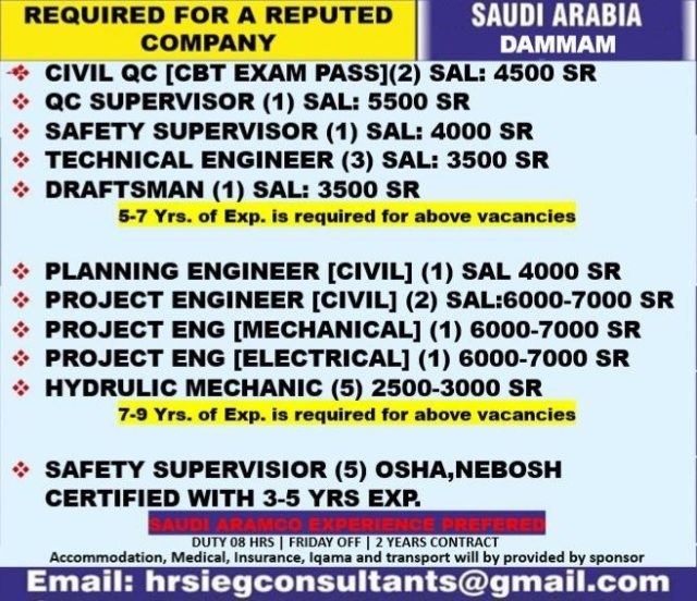 | Planning Engineer (civil) | 1 | 4000 SAR |