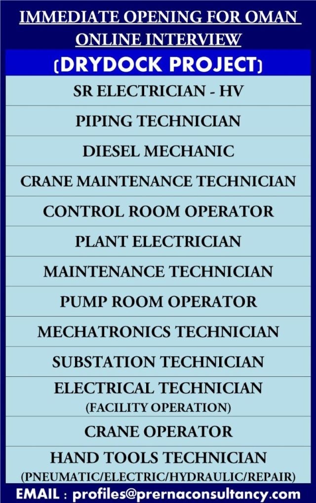 Oman dry dock job vacancy - Online Interview