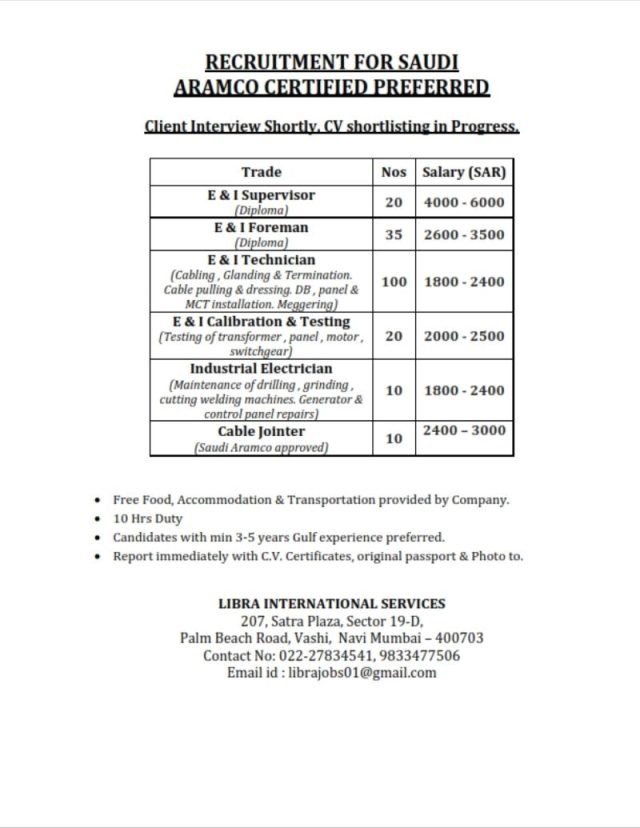 Email: librajobs@gmail.com / 022 27834541, 9833477506