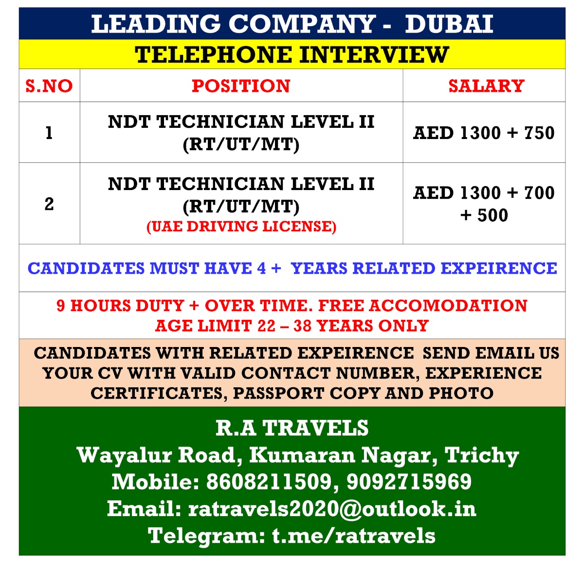 | NDT Technician Level II (RT/UT/MT) | 2050 AED | |