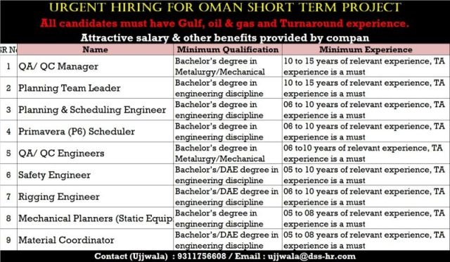 Contact (Ujjwala) : Email: ujjawala@dss-hr.com / 9311756608