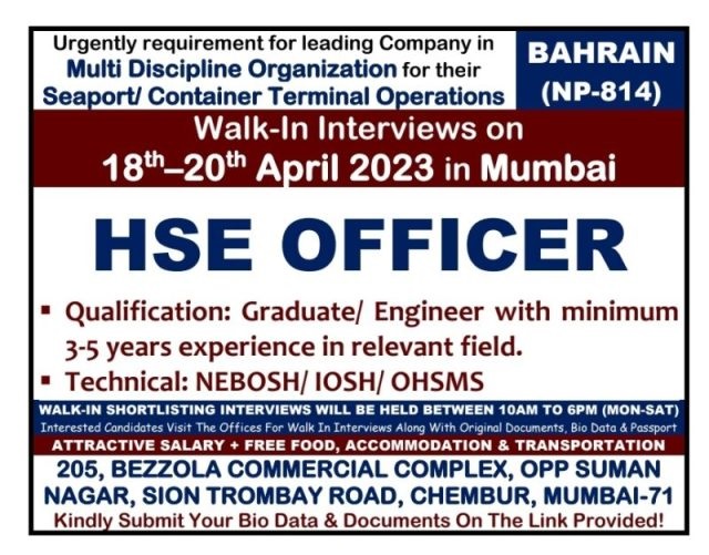 Hse Officer Jobs In Bahrain - Seaport/Container Terminal Operation